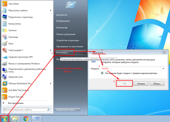 або Виконати - mstsc або Win+R - mstsc (Мал. 2)