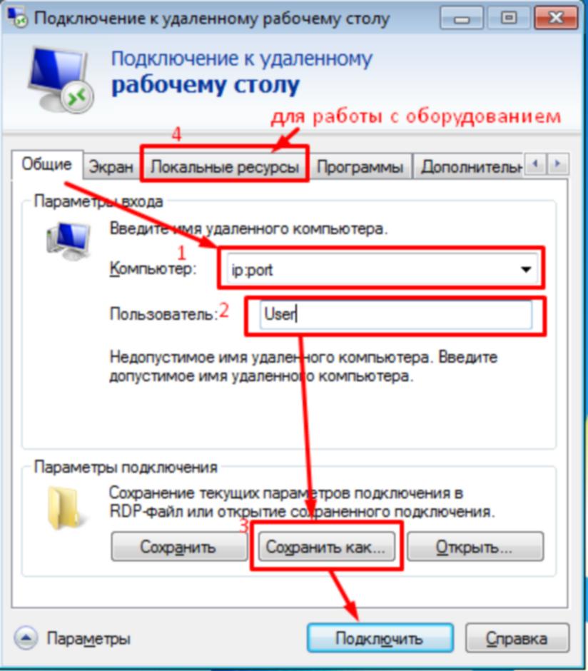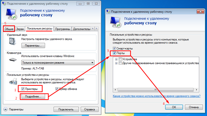 6. Для використання обладнання зокрема проброса COM-портів включаємо настройки на вкладці Локальні ресурси (Мал. 5).