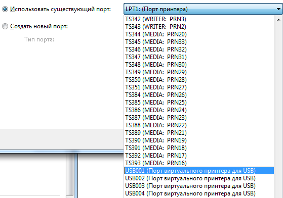 Відкриється вікно, де необхідно вибрати порт, через який принтер з'єднується з комп'ютером. За допомогою списку необхідно вибрати ПЕРШИЙ вільний USB порт (Мал. 7). Якщо до цього комп'ютера підключено кілька комп'ютерів, то перший вільний порт може бути з номером 002 або 003 в залежності від того, скільки принтерів підключено.